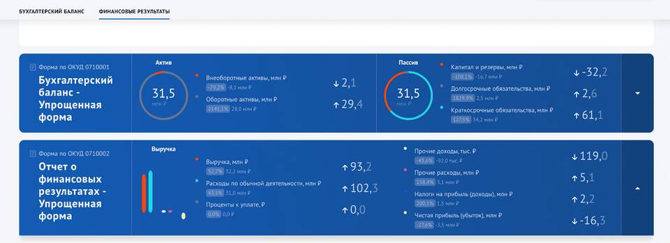 | Проверка через сервис ФНС "Прозрачный бизнес" | Открытые финансовые показатели |